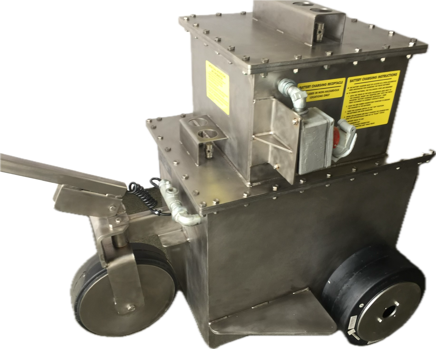 The EX9000 Cart Mule Mover is fully explosion proof, with all components enclosed to prevent ignition sources. Its rugged, all-stainless steel construction and intrinsically safe barrier design make it the ideal solution for moving heavy loads in hazardous duty locations. Every enclosure features a 2-inch flame path and 0.0015 inch gap tolerance, meeting or exceeding industry standards for explosion proof equipment.